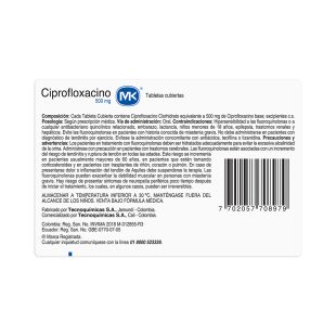 CIPROFLOXACINA 500 MG MK 10 TAB cantidad