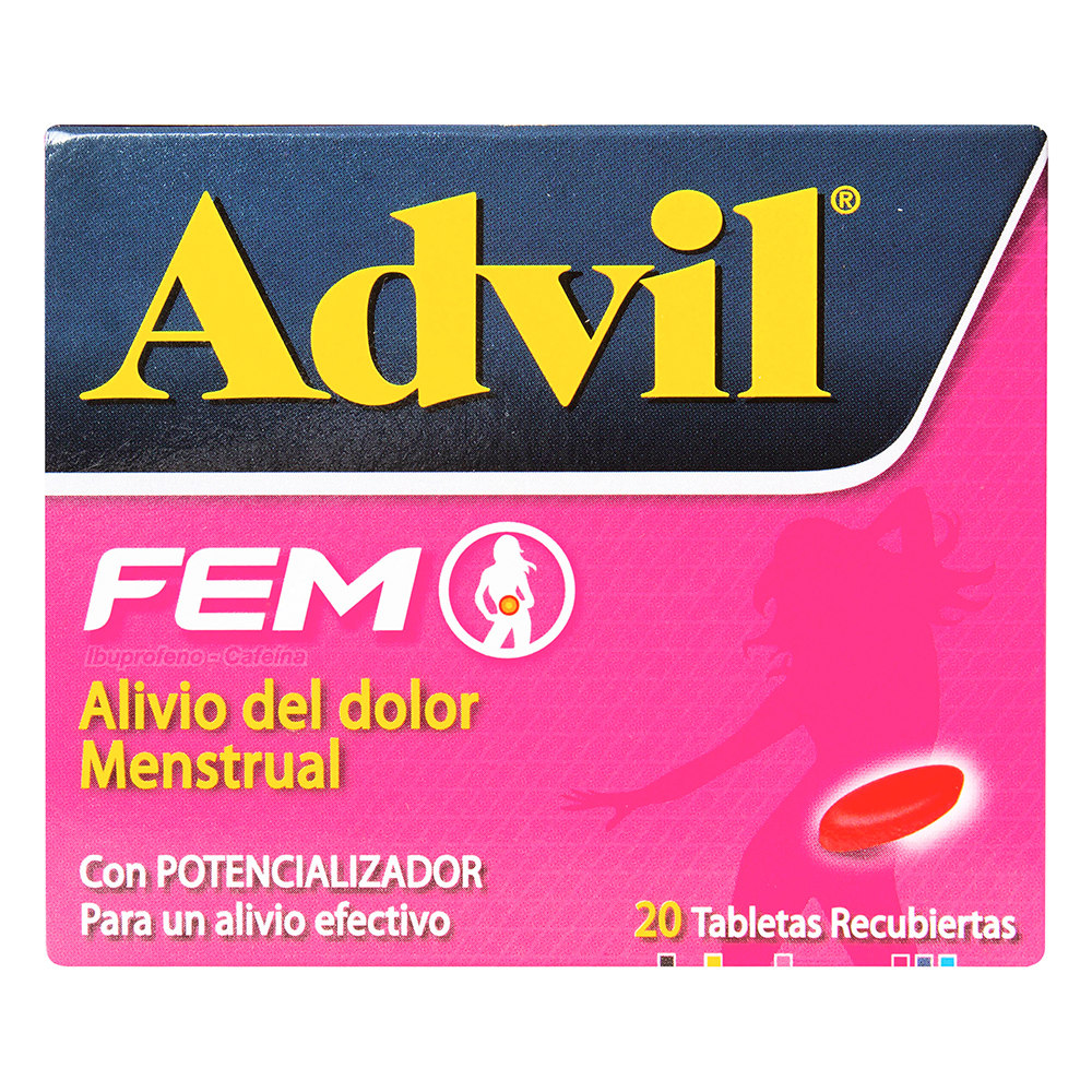 Advil Fem Alivio del dolor menstrual con potencializador para un alivio efectivo.