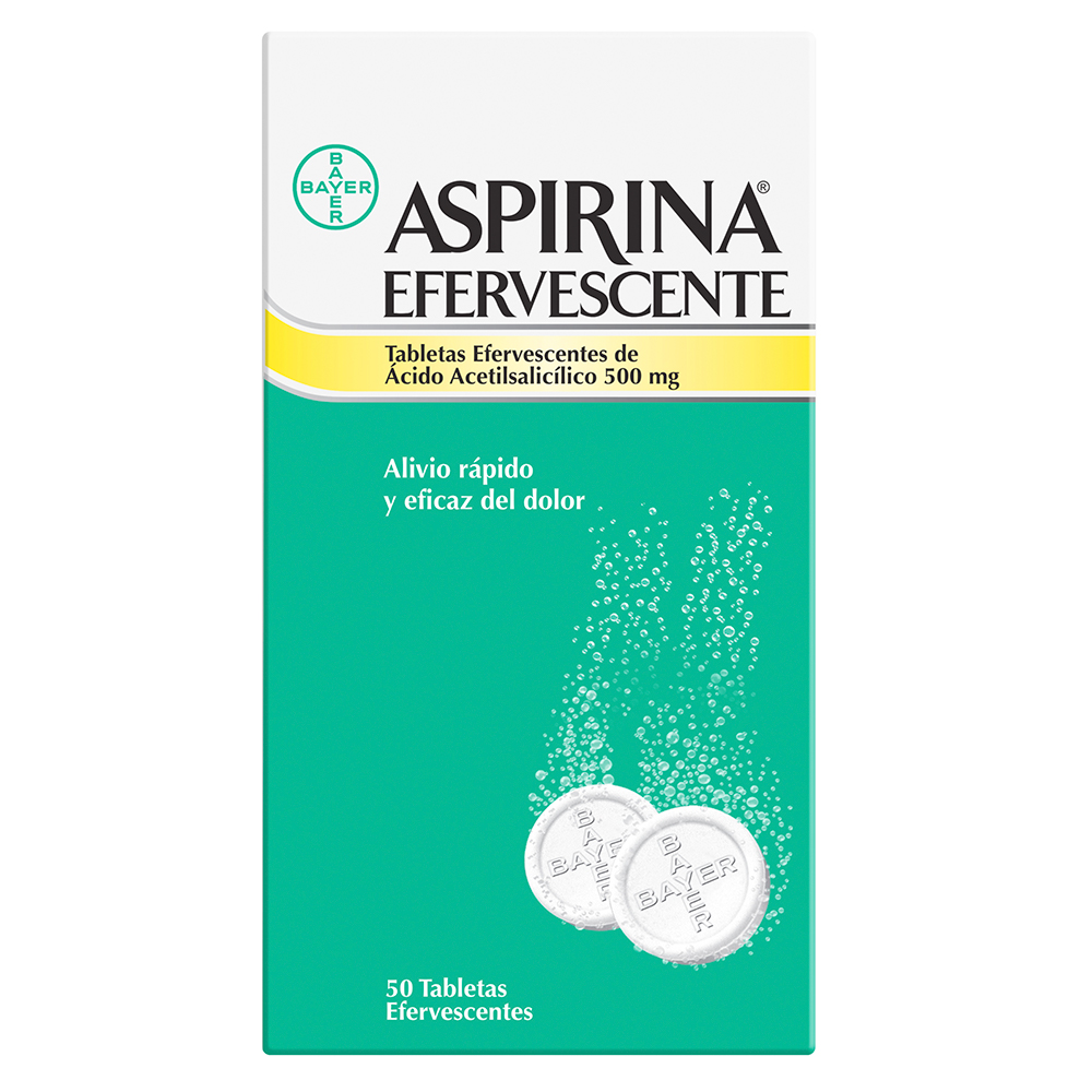ASPIRINA EFERVESCENTE 500 MG CAJA X 50 TABL. Brinda un alivio rápido y eficaz del dolor, su presentación efervescente permite una rápida absorción