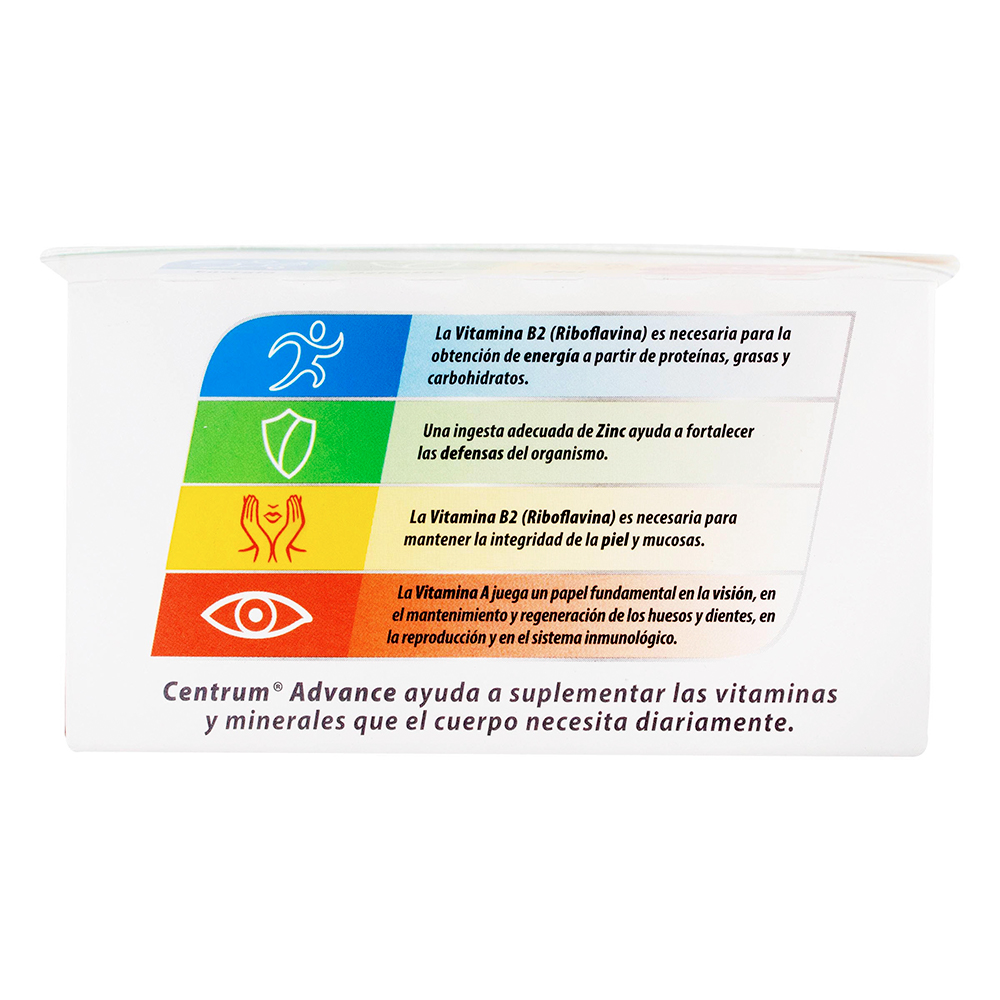 Centrum® Multivitamínico Multimineral con su fórmula completa de la A al Zinc ayuda a cubrir las deficiencias nutricionales. Con su fórmula balanceada Centrum complementa la dieta y aporta los beneficios de las vitaminas y minerales necesarios para tu día.