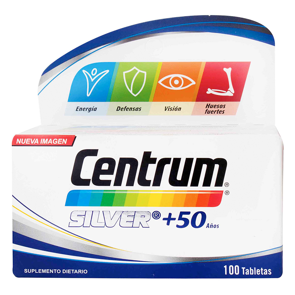 Centrum Silver + 50 años, Energía; La vitamina B2 (Riboflavina) es necesaria para la obtención de energía a partir de proteínas, grasas y carbohidratos. Defensas; Una ingesta adecuada de Zinc ayuda a fortalecer las defensas del organismo. Visión; La Vitamina A juega un papel fundamental en la visión, en el mantenimiento y regeneración de los huesos y dientes, en la reproducción y en el sistema inmunológico. Huesos Fuertes; El Calcio ayuda en el desarrollo de huesos y dientes fuertes. La Vitamina D ayuda al organismo a utilizar el Calcio y el Fósforo. X 60 tabletas