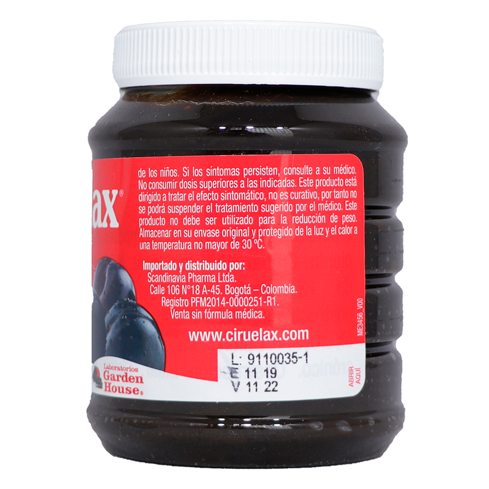 Ciruelax Regular Jalea es un laxante práctico y eficaz que contiene pulpa de ciruelas, manzanas, semillas de linaza y miel. Luego de ingerir una cucharada en la noche, entre las 8 y 12 horas, produce alivio del estreñimiento.