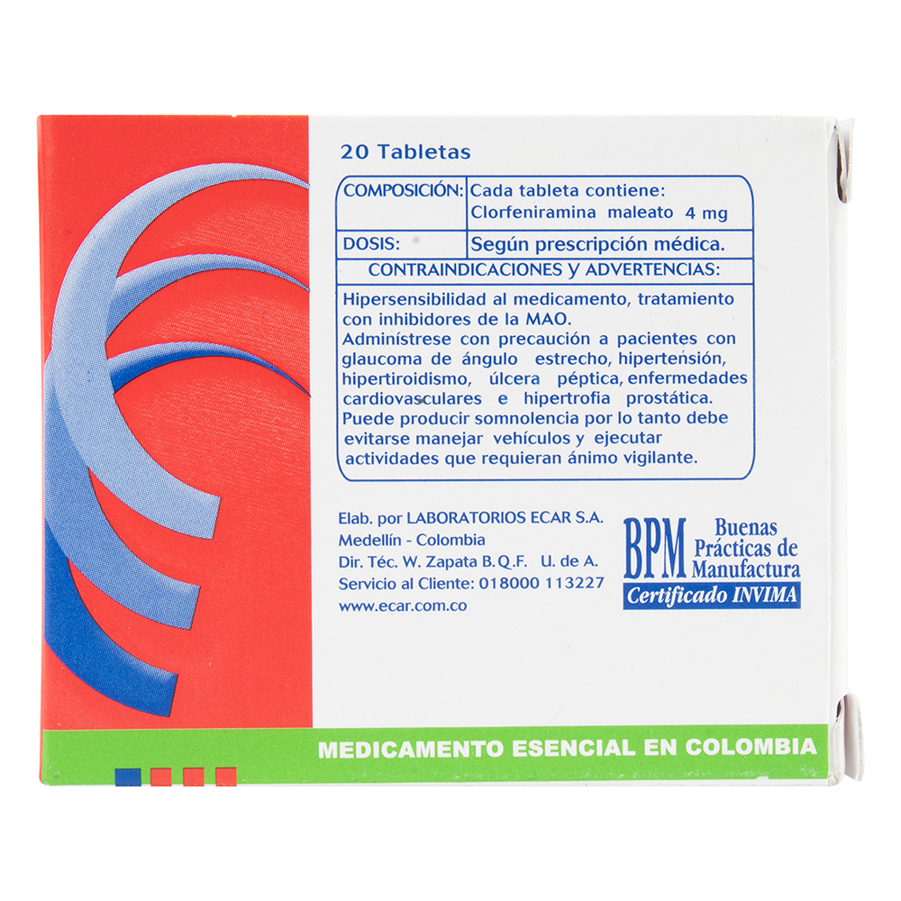 CLORFENIRAMINA 4MG TABLETA ECAR
