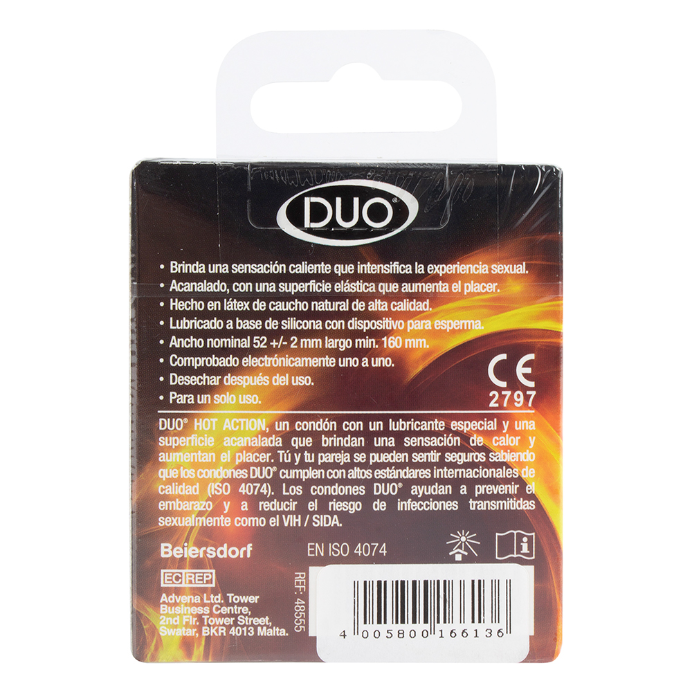 Tiene un lubricante especial que brinda una excitante sensacion caliente. Sube la temperatura del momento con DUO Hot Action.