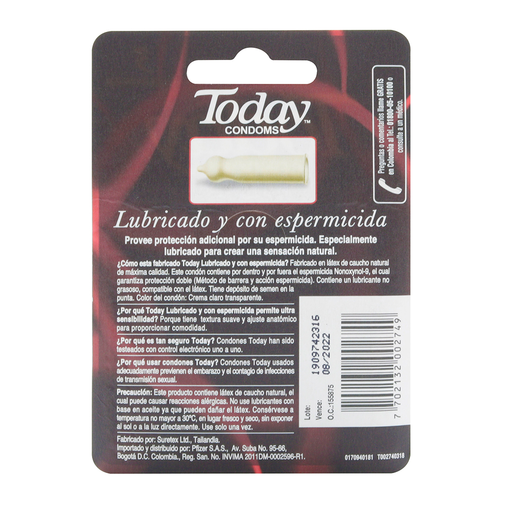 Today Condones Lubricado y con Espermicida, Provee protección adicional por su espermicida, Especialmente lubricado para crear una gran sensación natural, Máxima calidad comprobada, seguridad, sensibilidad y control de calidad electrónico X 3 Unds