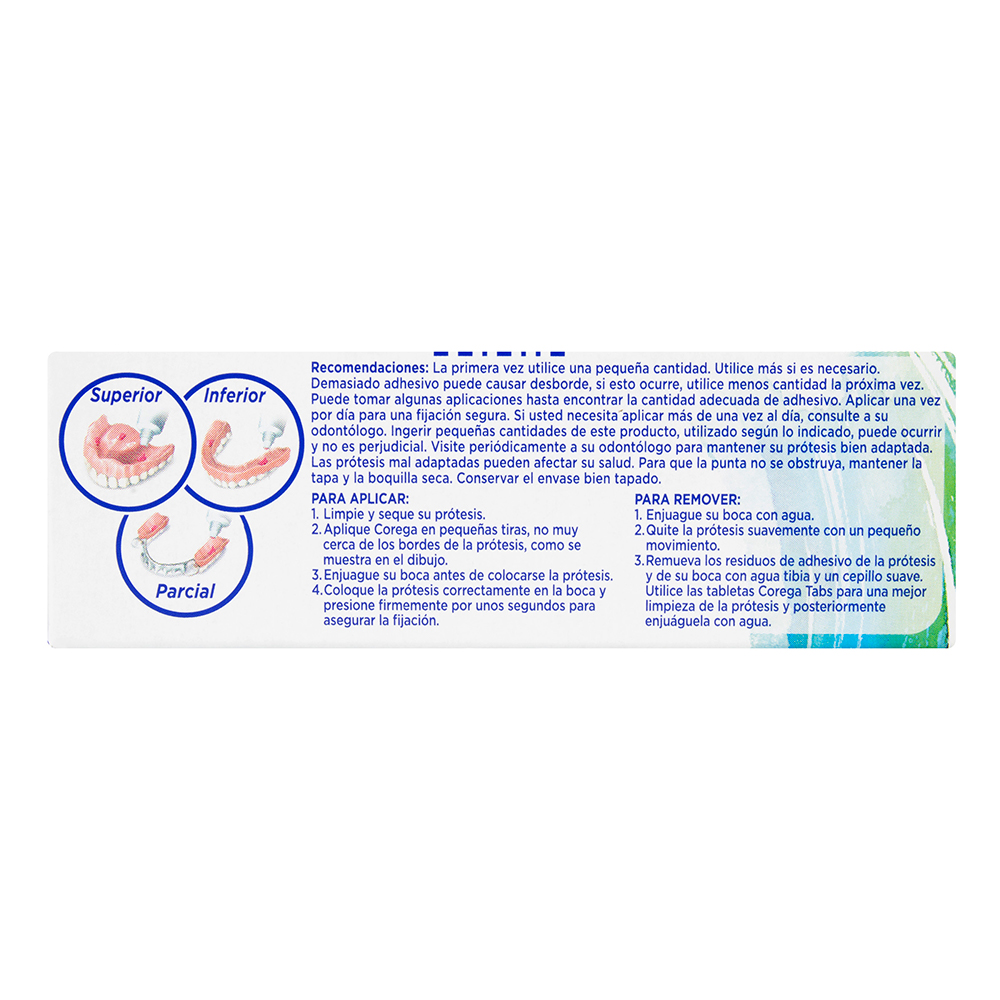 Corega Crema Adhesiva para Prótesis Dental Sabor Menta 40 gr, Fórmula ULTRA ADHESIVA que fija prótesis hasta por 12 horas.