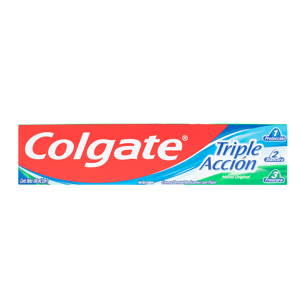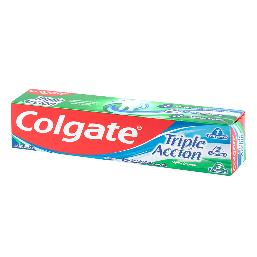 Disfruta de una boca más saludable y una sonrisa irresistible con la Crema Dental Colgate Triple Acción. Su delicioso sabor a Menta Original brinda a tus dientes, encías y lengua un aliento refrescante.