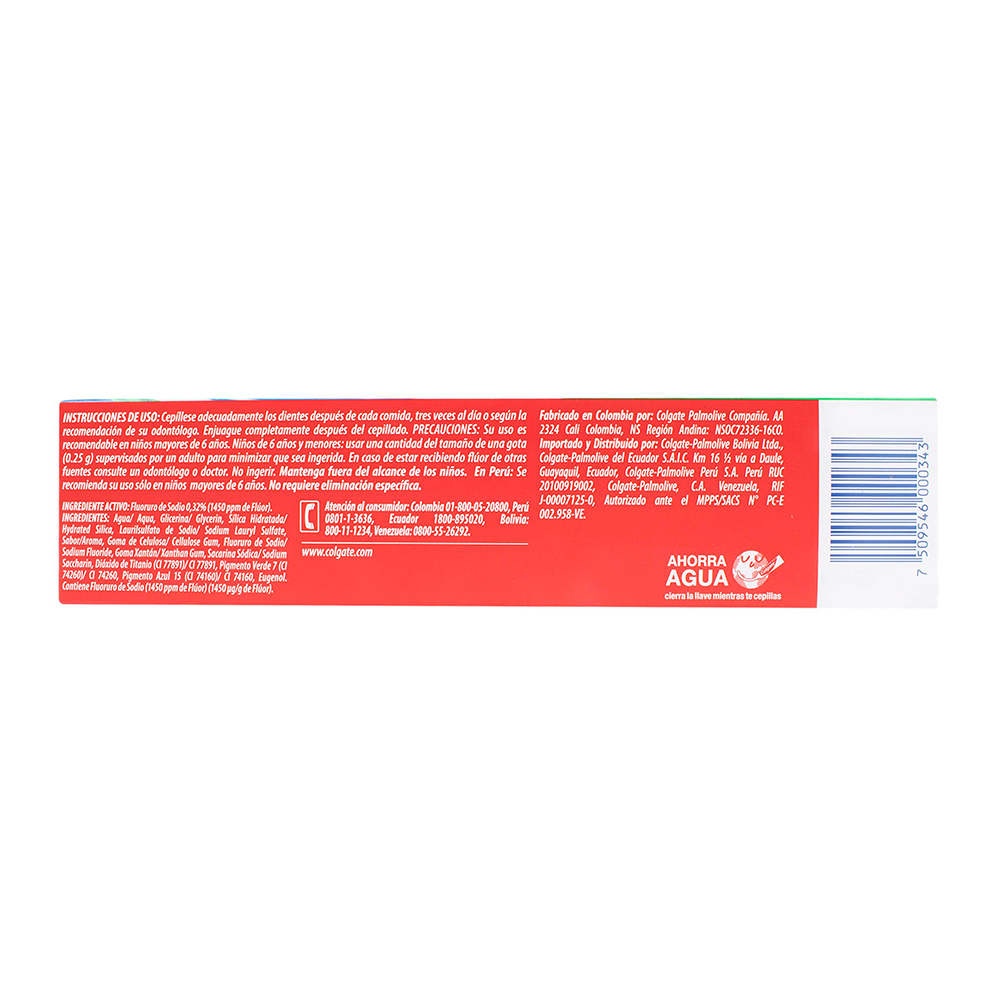 Se encuentra adicionada con flúor que fortalece los dientes desde la primera aplicación y una fórmula anticaries que elimina gérmenes y bacterias, protegiendo su esmalte. Úsalo con frecuencia acompañado de un cepillo de dientes e hilo dental encerado Colgate de tu preferencia para obtener mejores resultados.