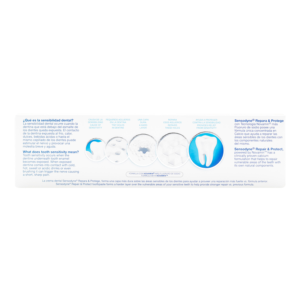 Crema dental Sensodyne Repara y Protege blanqueador x 100 gr, Alivio de la sensibilidad dental y protección diaria de los dientes sensibles.