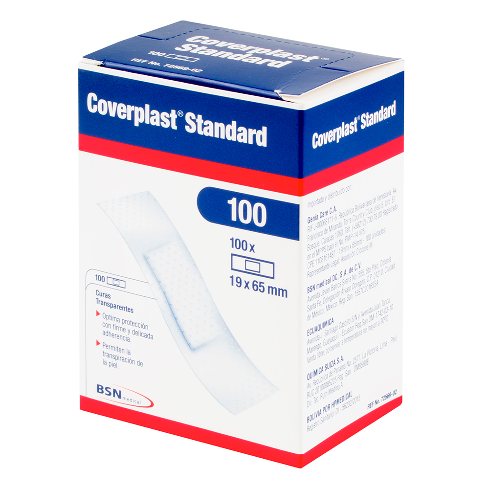Profesional Estandar Transparente protegen y cubren heridas menores. Son plásticas, autoadhesivas, impermeables y transparentes. Tienen un adhesivo amigable con la piel, son altamente adaptables y flexibles. Estan recubiertas por un lado con adhesivo que contiene caucho natural y un apósito no tejido absorbente (almohadilla).
