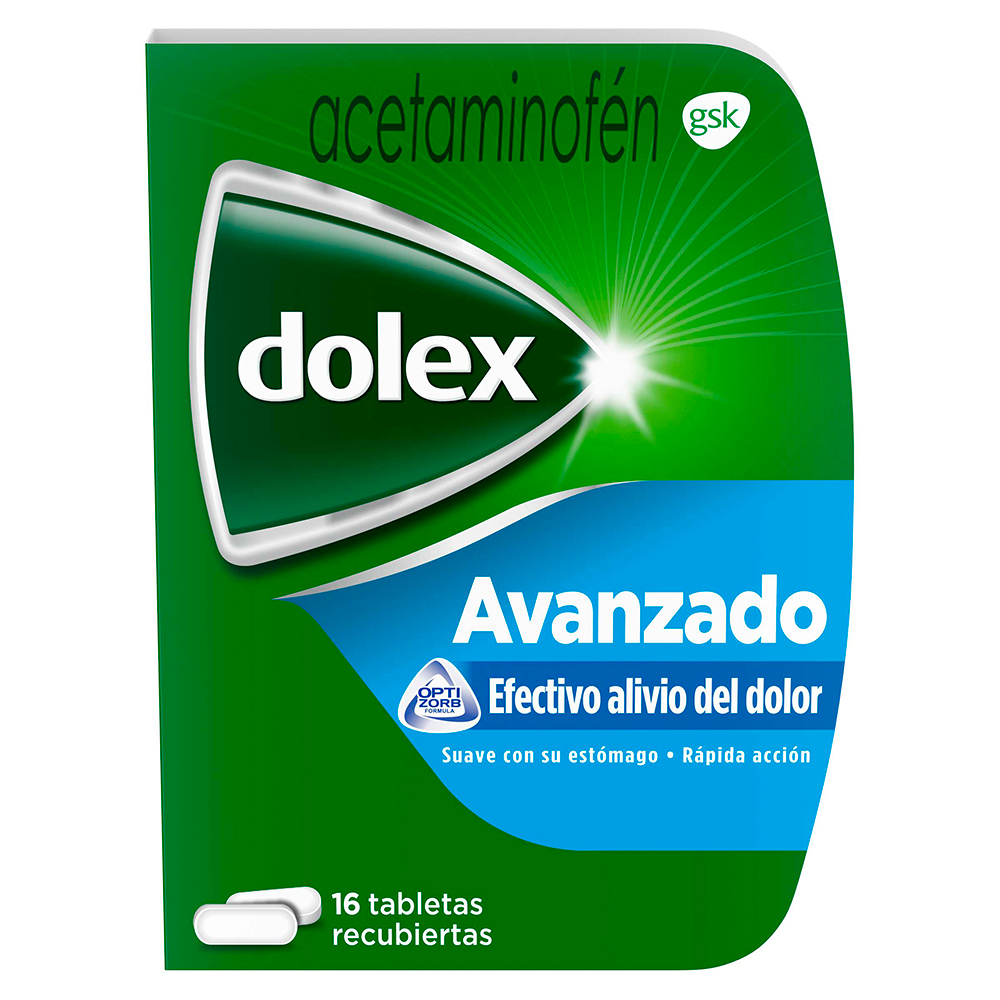 Dolex Avanzado Alivio eficaz del dolor y la fiebre, Rápida absorción con tecnología OPTIZORB 16 tabletas recubiertasDolex Avanzado Alivio eficaz del dolor y la fiebre, Rápida absorción con tecnología OPTIZORB 16 tabletas recubiertas
