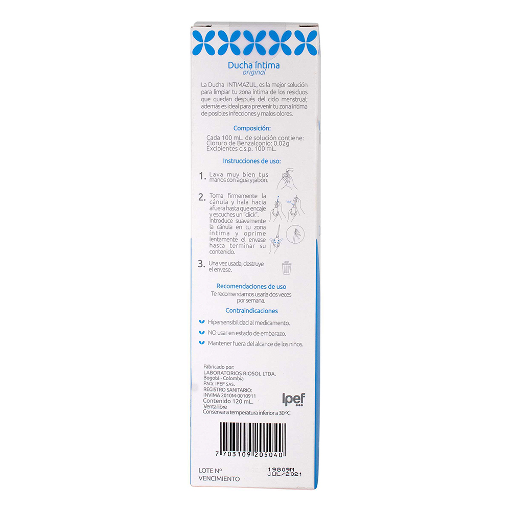 Ducha Intima Original de Intimazul. Es la mejor solución para limpiar tu zona intima de los residuos que quedan despues del ciclo menstrual; además es ideal para prevenir tu zona intima de posibles infecciones y malos olores.