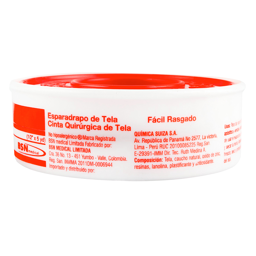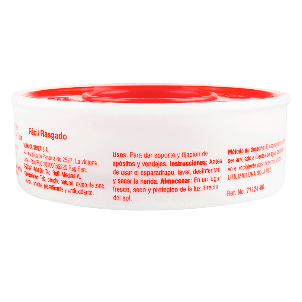Esparadrapo de tela con soporte de algodón, esta cubierto por un lado con adhesivo a base de caucho natural, resinas y óxido de zinc. Es indicado para dar soporte y fijación de apositos y vendajes. Tiene una fijación fuerte y confiable, es de alta resistencia, facil rasgado y adaptable.