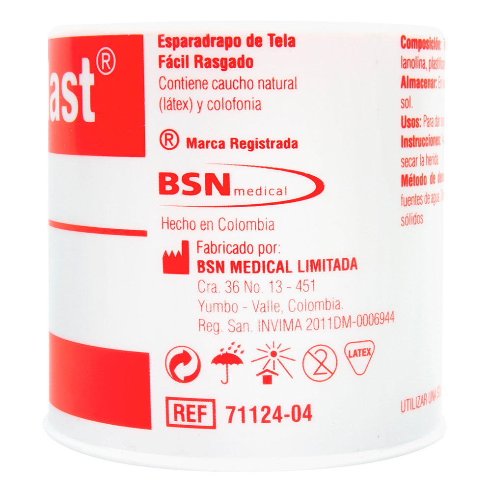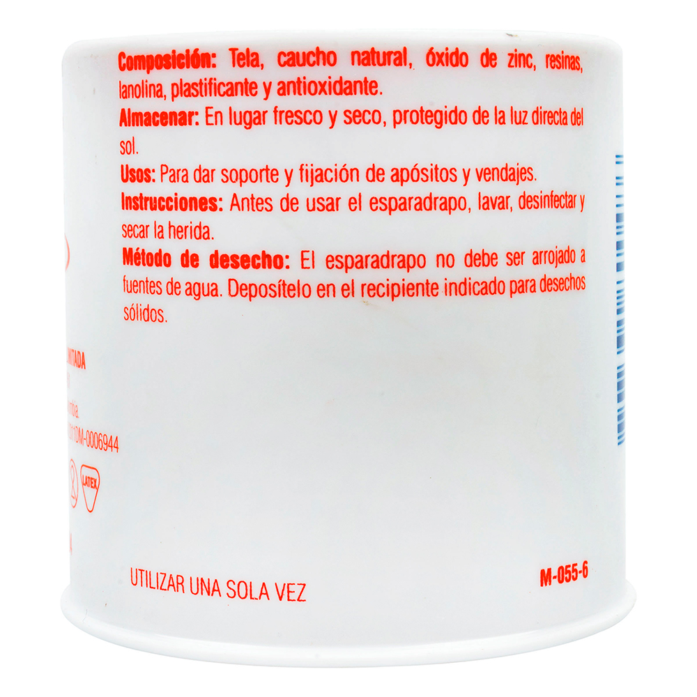 Esparadrapo de tela con soporte de algodón, esta cubierto por un lado con adhesivo a base de caucho natural, resinas y óxido de zinc. Es indicado para dar soporte y fijación de apositos y vendajes. Tiene una fijación fuerte y confiable, es de alta resistencia, facil rasgado y adaptable.