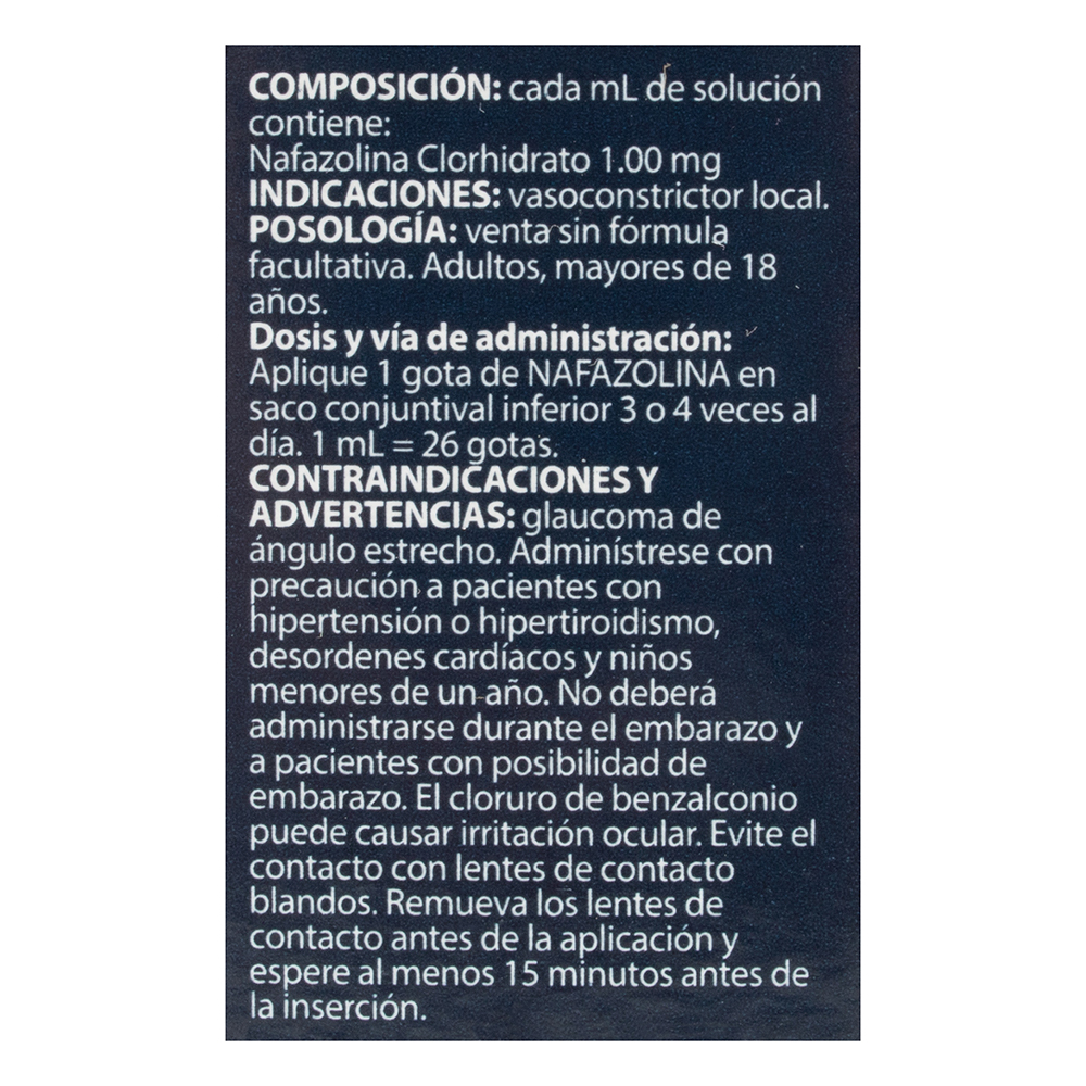 Alivio temporal de la congestión, enrojecimiento e irritación oculares leves de origen irritativo y/o alérgico, causados por agentes externos como: humo del tabaco, polvo, contaminación, ambientes secos o cargados, luz solar, agua clorada o del mar, lectura o trabajos que requieran fijación prolongada de la vista.