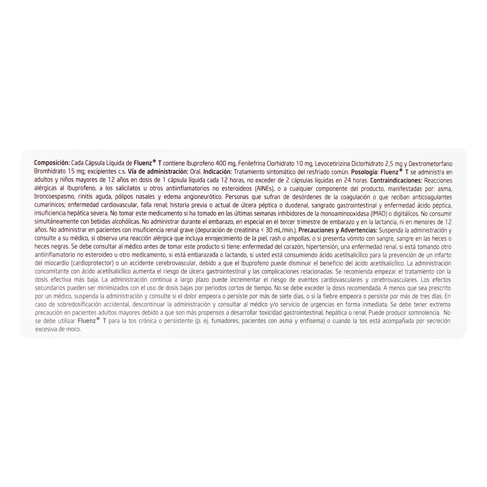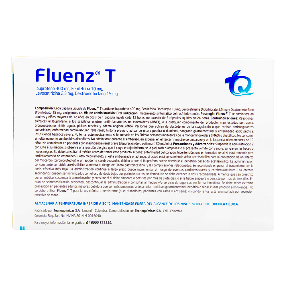 Es una fórmula de última generación, eficaz y segura, que incluye Ibuprofeno (analgésico y antipirético), Fenilefrina (descongestionante), Levocetirizina (antihistamínico) y Dextrometorfano (antitusivo), facilitando el manejo integral de la sintomatología de las vías respiratorias superiores ocasionada por el resfriado común.