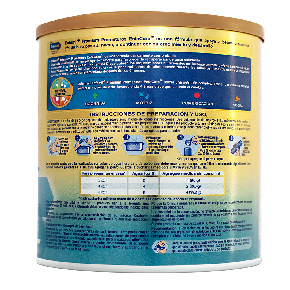 Enfamil EnfaCare Premium está especialmente formulada para la nutrición de bebés prematuros. Contribuye a una alimentación equilibrada, y aporta las vitaminas y minerales que tu bebé necesita en esta etapa de la vida.