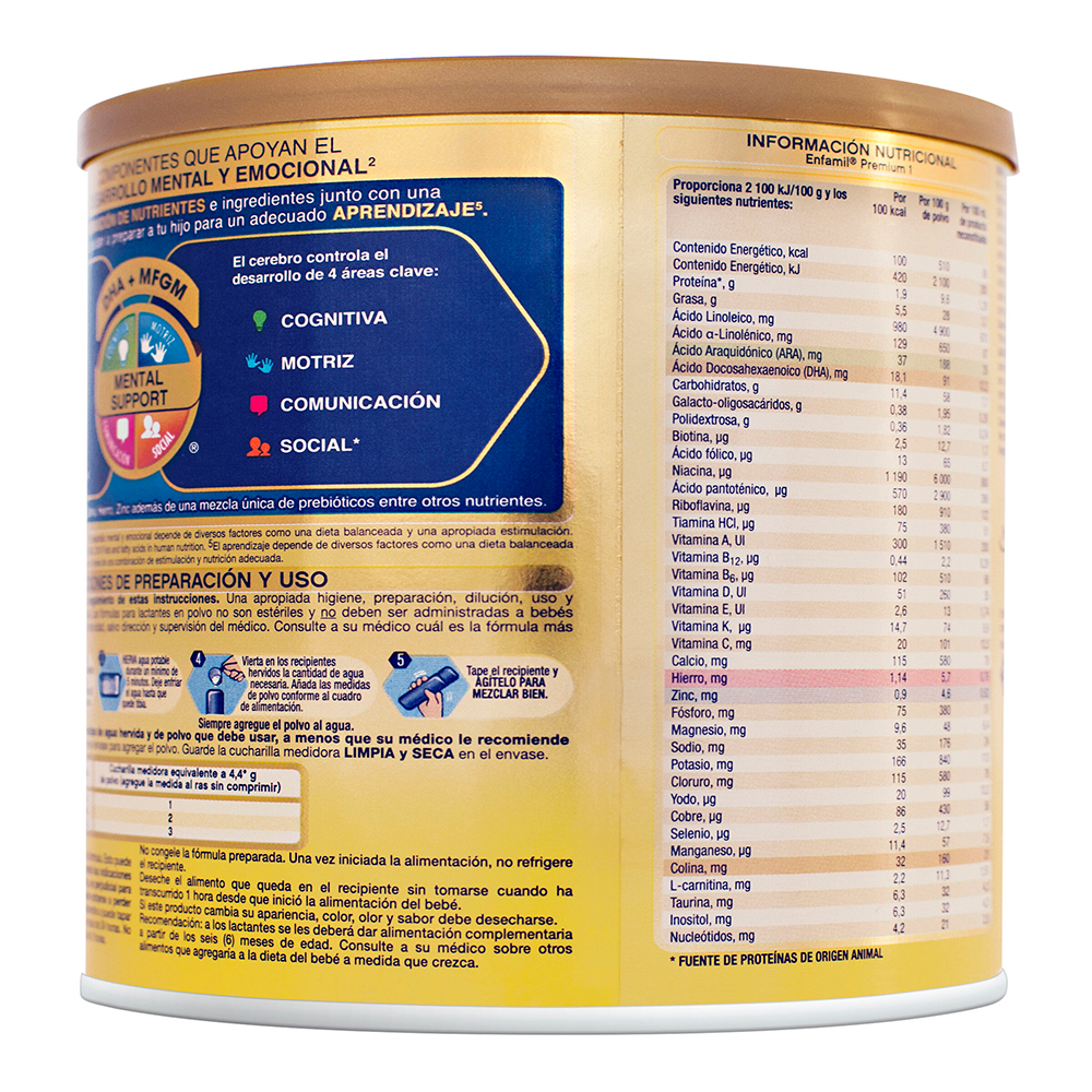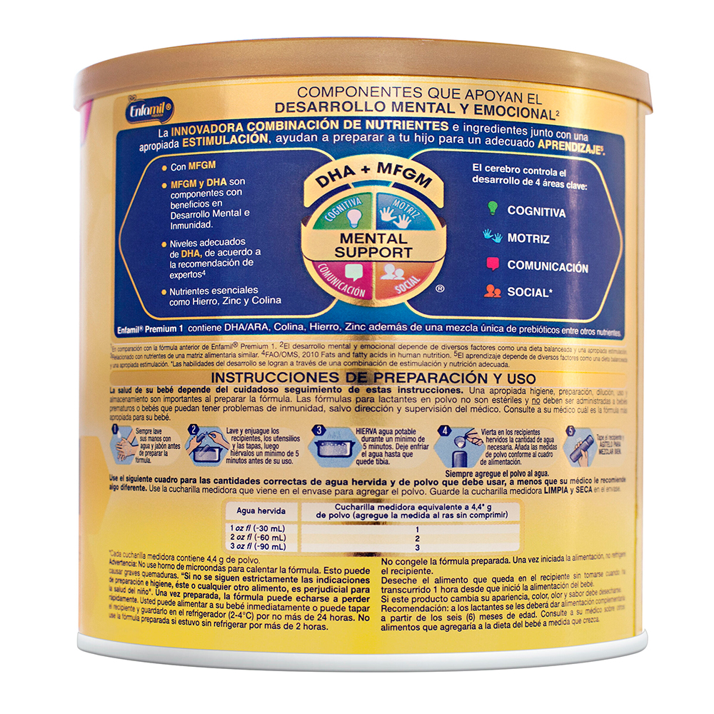 Fórmula infantil de inicio en polvo para lactantes de 0 a 6 meses. Apoya el desarrollo Mental*. Las habilidades derivadas del desarrollo mental dependen de diversos factores como una nutrición, genética y estimulación adecuada. Facil digestión