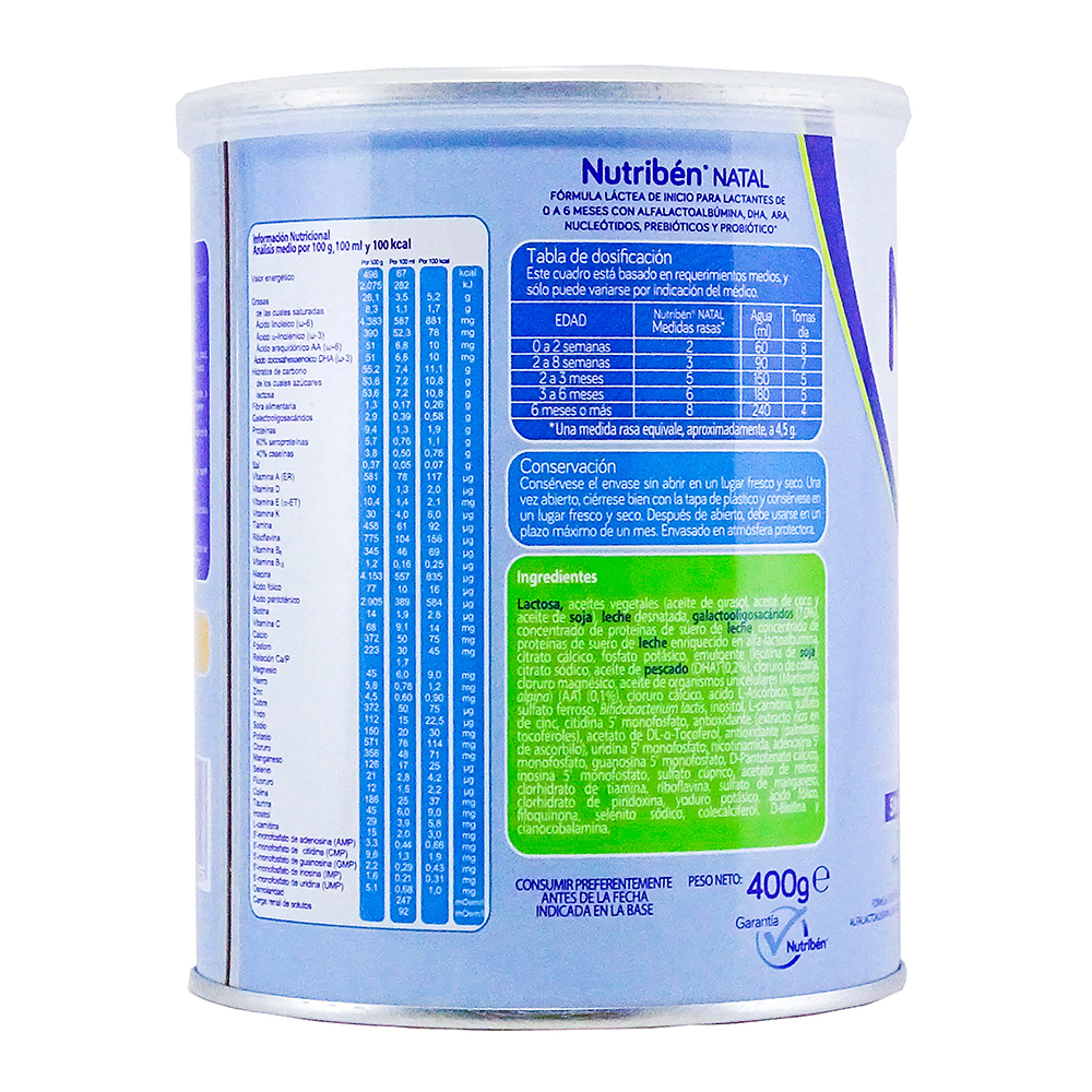 Nutribén Natal es una leche de inicio para lactantes desde el primer día hasta el 6 mes, indicada cuando la lactancia materna no es posible o es insuficiente.