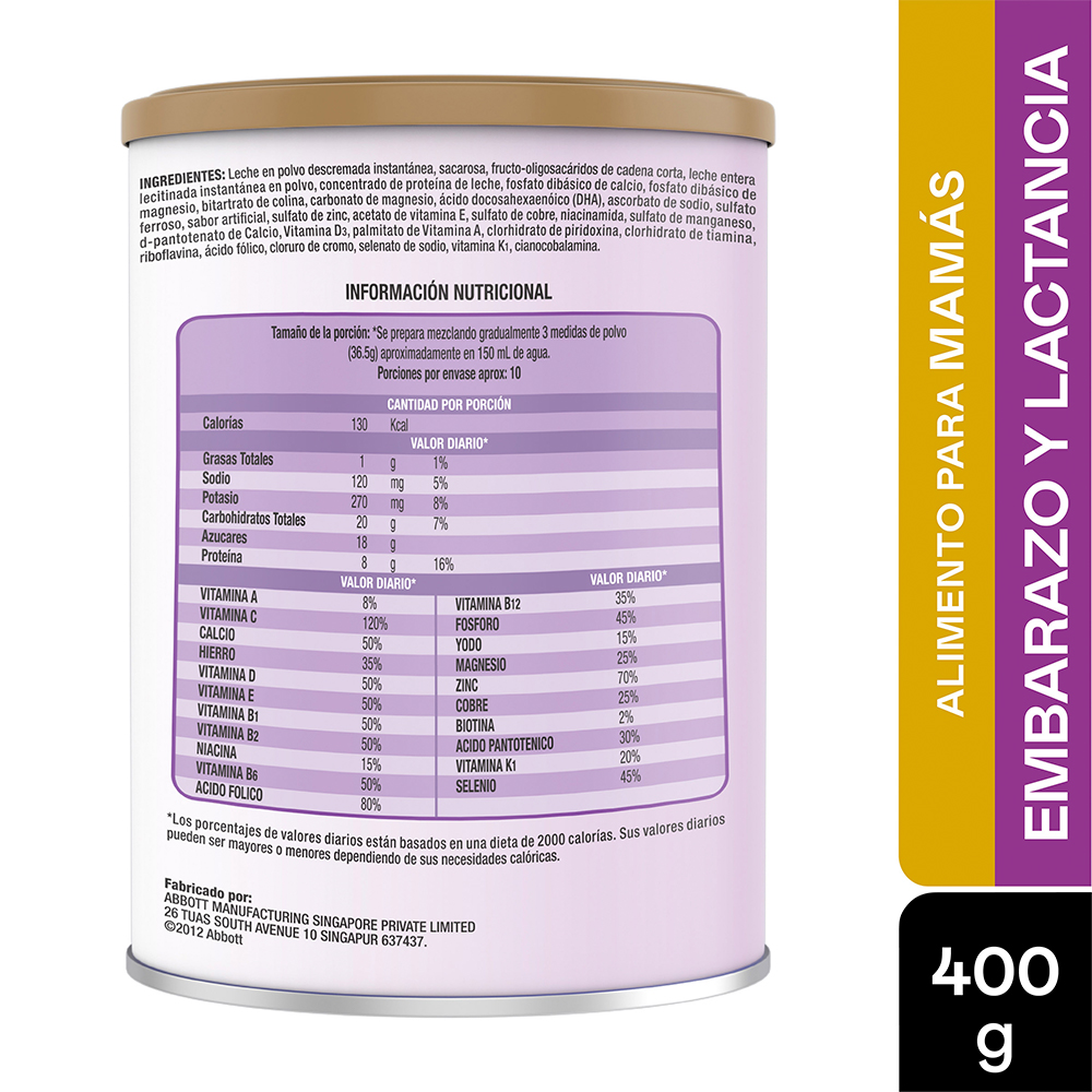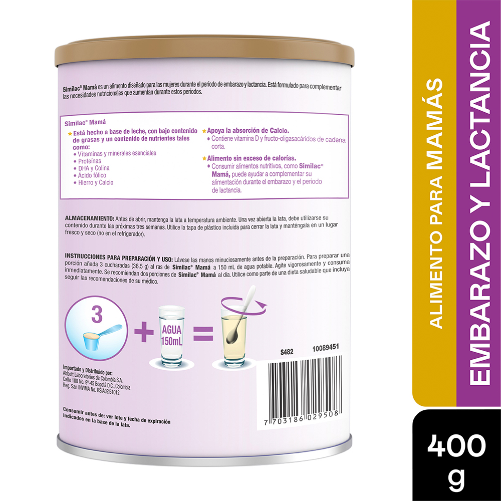 – Similac® Mamá es un alimento a base de leche, bajo en grasa, que contiene vitaminas y minerales esenciales para apoyar las necesidades nutricionales de las mujeres embarazadas y en periodo de lactancia.