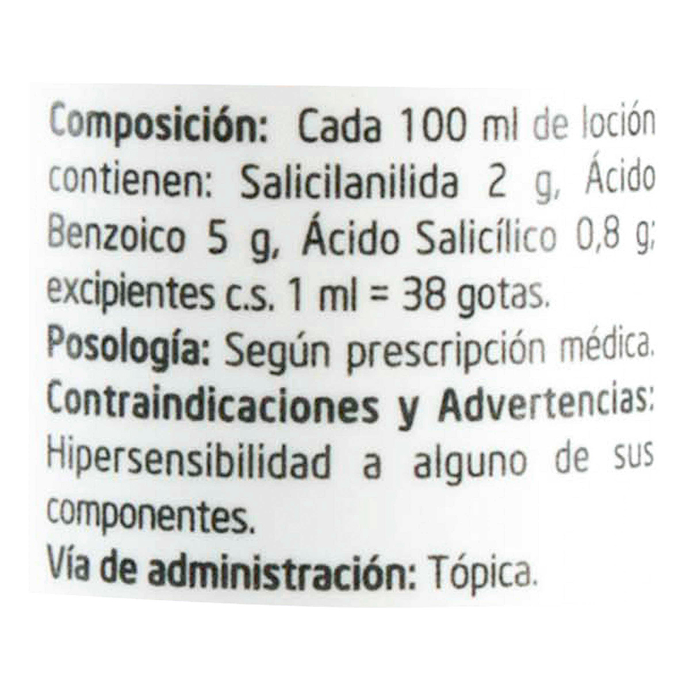 Es un producto antifúngico que contiene clotrimazol como ingrediente activo. Se utiliza para el tratamiento de infecciones fúngicas en la piel, como la tiña (infección por hongos) y la candidiasis (infección por levaduras). Esta loción tópica actúa eliminando los hongos y aliviando los síntomas asociados, como picazón, enrojecimiento y descamación de la piel.