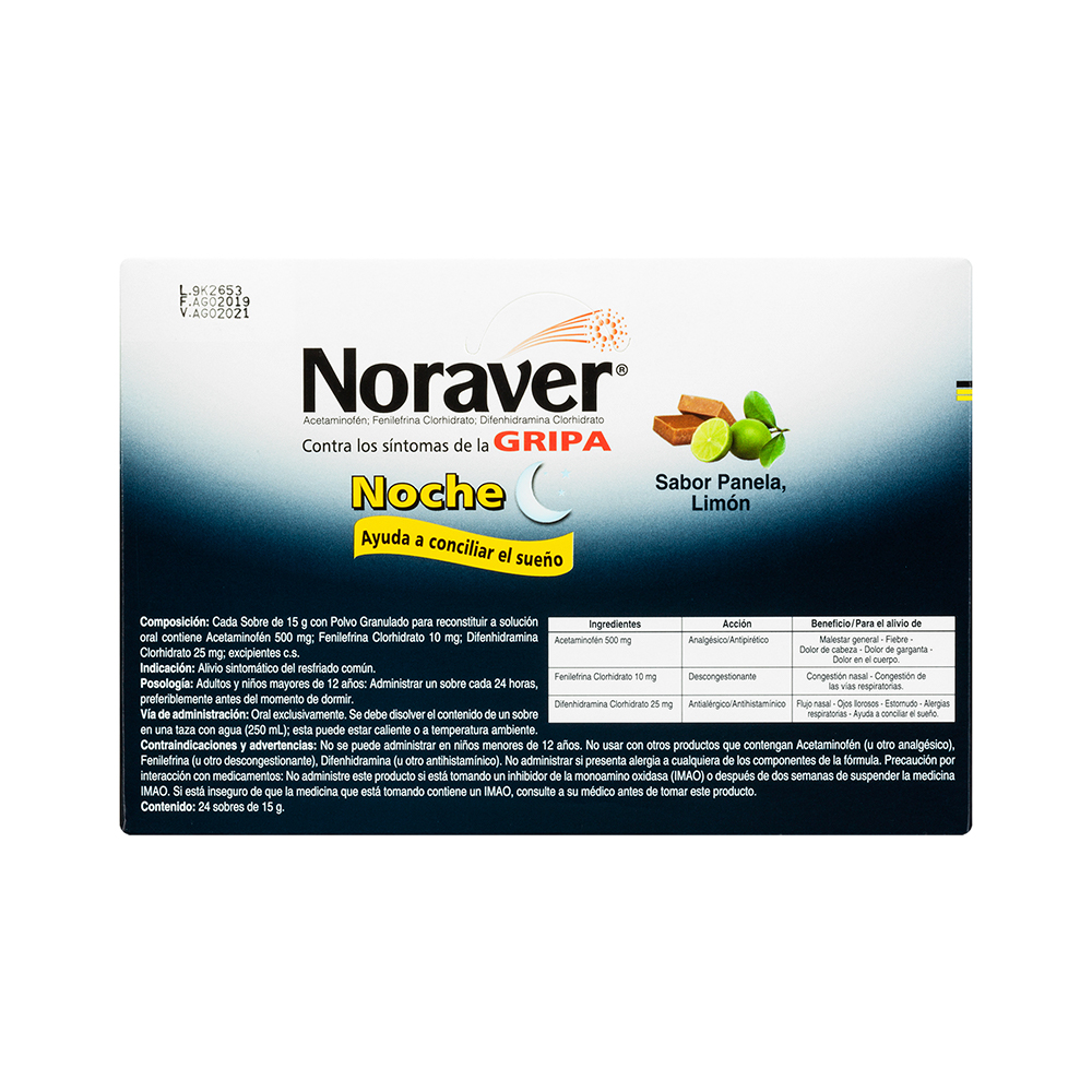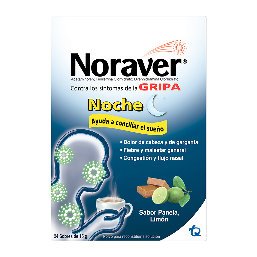 Es un medicamento que combina varios ingredientes activos para aliviar los síntomas del resfriado y la gripe, como la congestión nasal, el dolor de cabeza, el dolor de garganta y la fiebre. Potente y prolongado alivio del: malestar general, fiebre, escalofrío, dolor de cabeza, dolor de garganta, dolor en el cuerpo, congestión nasal y congestión de las vías respiratorias, flujo nasal, ojos llorosos, estornudos,alergias respiratorias. Ayuda a conciliar el sueño..