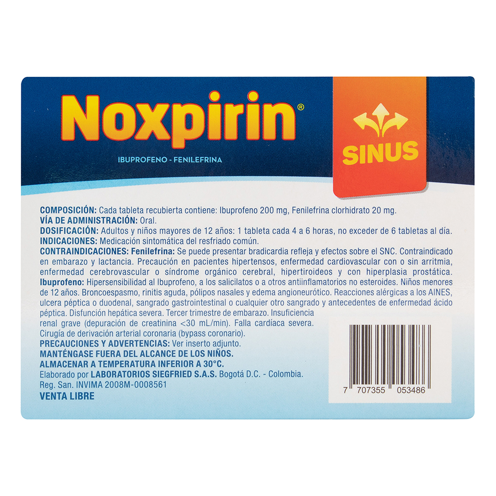 Antigripal compuesto por ibuprofeno y fenilefrina. Controla síntomas de la gripa común como son: dolor de cabeza, congestión nasal, estornudos, dolor de garganta, tos seca, malestar general y dolor articular. indicado para el tratamiento de la Sinusitis Aguda
