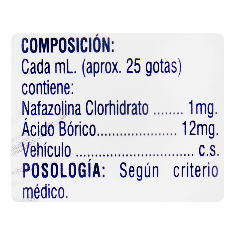 medicamento oftálmico que contiene nafazolina, un vasoconstrictor que reduce la hiperemia conjuntival y alivia temporalmente la irritación ocular. Se utiliza para el alivio temporal de la congestión ocular asociada con la irritación ocular o el resfriado común.