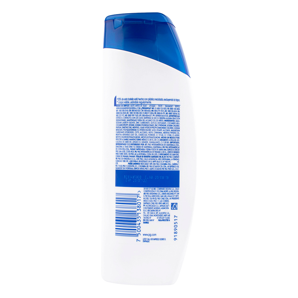 Head & Shoulders Purificación Capilar Carbón Activado, con fragancia a menta, remueve impurezas para una limpieza profunda, y una sensación de frescura que te acompaña durante el día.