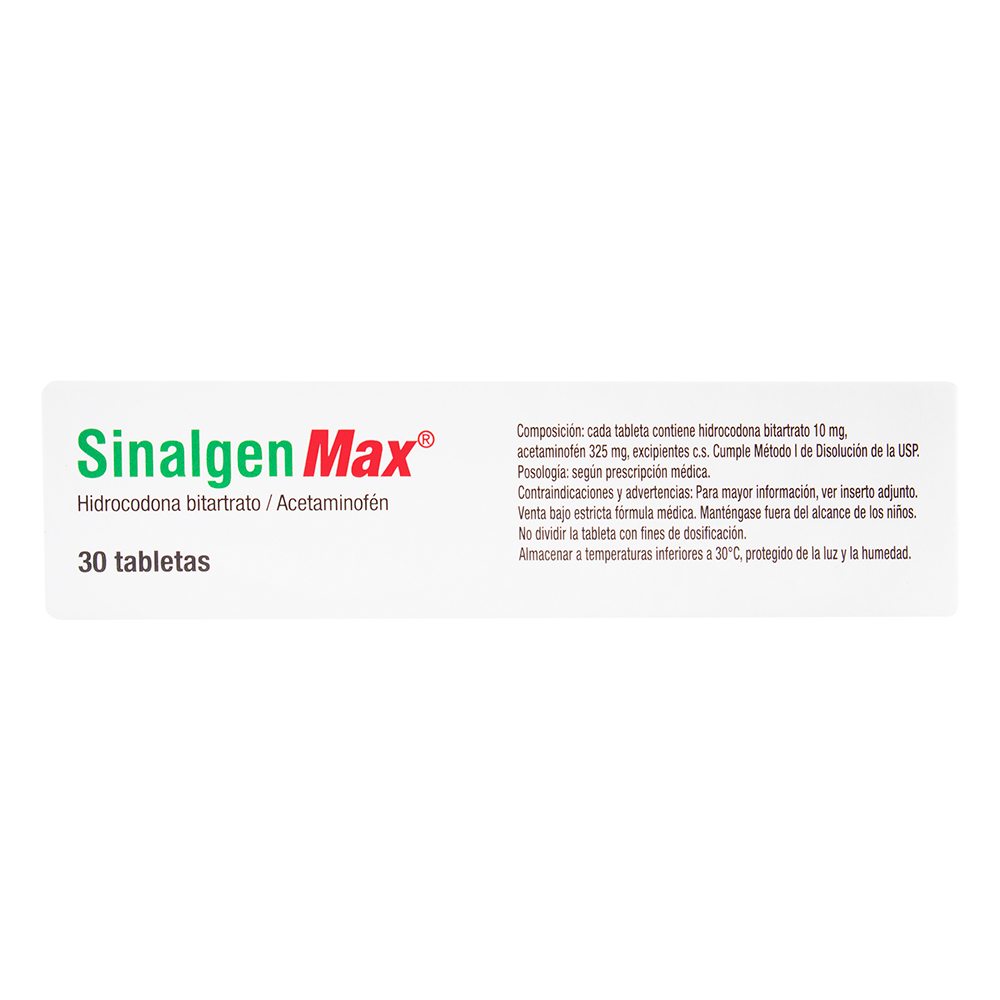 Acetaminofen Sinalgen Max 10/325Mg Caja X 30 Tab Hidrocodona Bitartrato Acetaminofen
