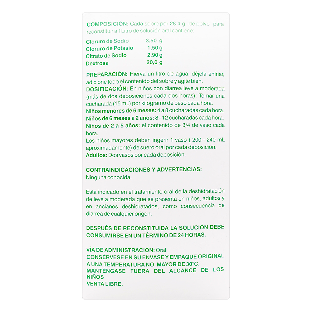 Prevención y tratamiento de deshidrataciones por vómito o diarreas de diversos orígenes.