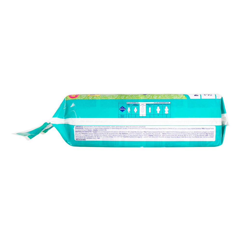 Son mas gruesitas, pero igualmente cómodas. Tiene suave cubierta con aloe vera y manzanilla que no irrita tu piel. Además ajuste seguro, para que te muevas como quieras y una poderosa zona antiderrames de última generación que con su gel, absorbe esas grandes descargas.