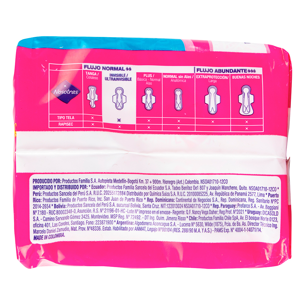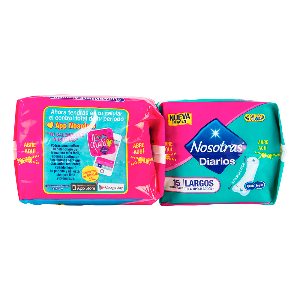Toallas invisibles Sensiti-V diseñadas para tratar con suavidad y delicadeza la piel. Protectores Nosotras Diarios largos son para ti. Son 3 cm más largos y absorben 46% más que un protector normal.